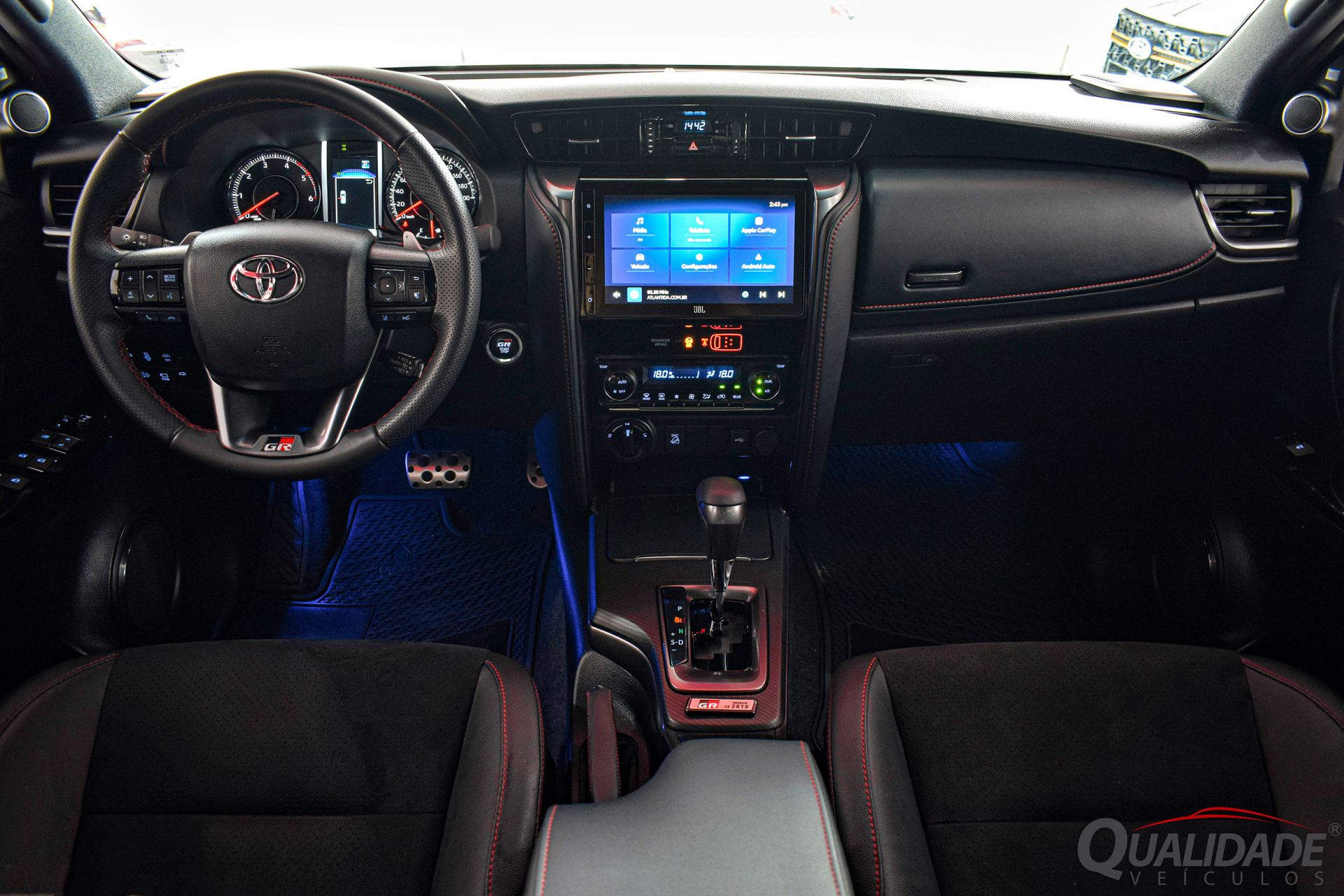 O pacote de opcionais inclui: ar condicionado digital dual-zone, direção hidráulica, trio elétrico, espelhos com rebatimento elétrico, central multimídia, Android Auto, Apple CarPlay, Bluetooth®, USB, câmera de ré e 360°, volante multifuncional, piloto automático adaptativo, alerta de colisão frontal, frenagem de emergência, alerta de ponto cego, alerta de tráfego cruzado traseiro, paddle-shifts, computador de bordo, sensor crepuscular, sistema de som premium JBL, faróis em Led, luzes de condução diurna, chave presencial c/ telecomandos, carregador de celular por indução, bancos dianteiros com ajustes elétricos, sensores de estacionamento, controles de estabilidade e tração, rodas de liga leve, Airbags frontais, laterais, de cortina, EBD e ABS. Além dos itens citados, a versão Gazoo Racing Sport, possui diversas diferenças estéticas e mecânicas, em comparação aos demais modelos de sua gama, sendo seus diferenciais: Motor 2.8L Turbo Diesel mais potente (224 cv), suspensão esportiva, preparada para off-road, design exclusivo, com para-choques, rodas 18" e detalhes em preto brilhante, além de acabamento interno com costuras vermelhas, bancos em Ultrasuede, detalhes GR no painel, volante, bancos e pedais em aço, oferecendo uma experiência mais dinâmica e robusta. (Acompanha kit de emergência original Gazoo Racing).