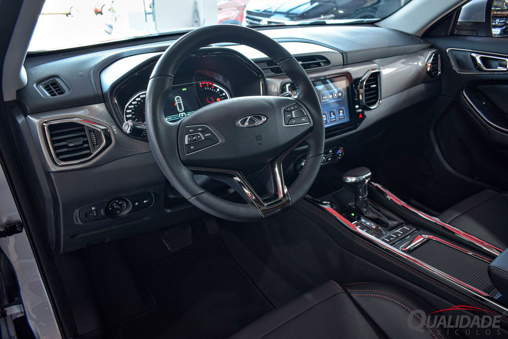 No pacote de opcionais estão incluídos: ar condicionado digital, direção elétrica, trio elétrico, espelhos c/ rebatimento elétrico, computador de bordo, central multimídia, câmera de ré e 360°, Bluetooth, USB, Android Auto, Apple CarPlay, volante multifuncional c/ ajuste de altura, piloto automático, sensor crepuscular, controles de tração e estabilidade, freio de estacionamento eletrônico c/ função Auto-Hold, monitoramento de pressão dos pneus, assistente de partida em rampas, controle automático de descida, bancos em couro, ajuste elétrico do banco do motorista, Isofix, teto panorâmico, chave presencial c/ telecomandos, partida por botão, sensores de estacionamento, luzes de rodagem diurna, rodas de liga leve, faróis de neblina, airbags frontais, laterais, de cortina e ABS.