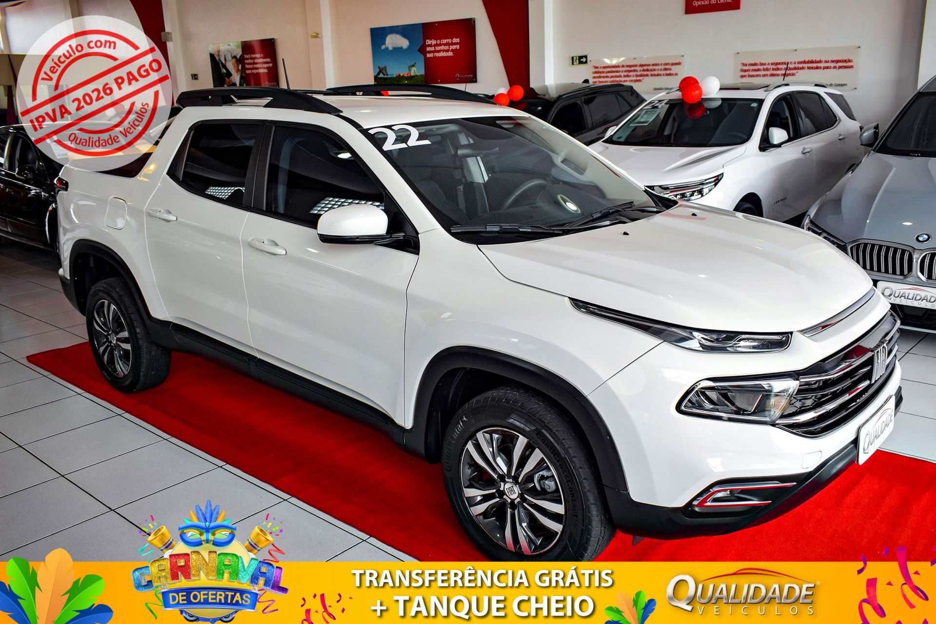 Observações:TORO FREEDOM T270 1.3 TURBO AT 2022 na cor Branco Ambiente, de única dona, com apenas 33.680km. Veículo impecável, em raro estado de conservação.