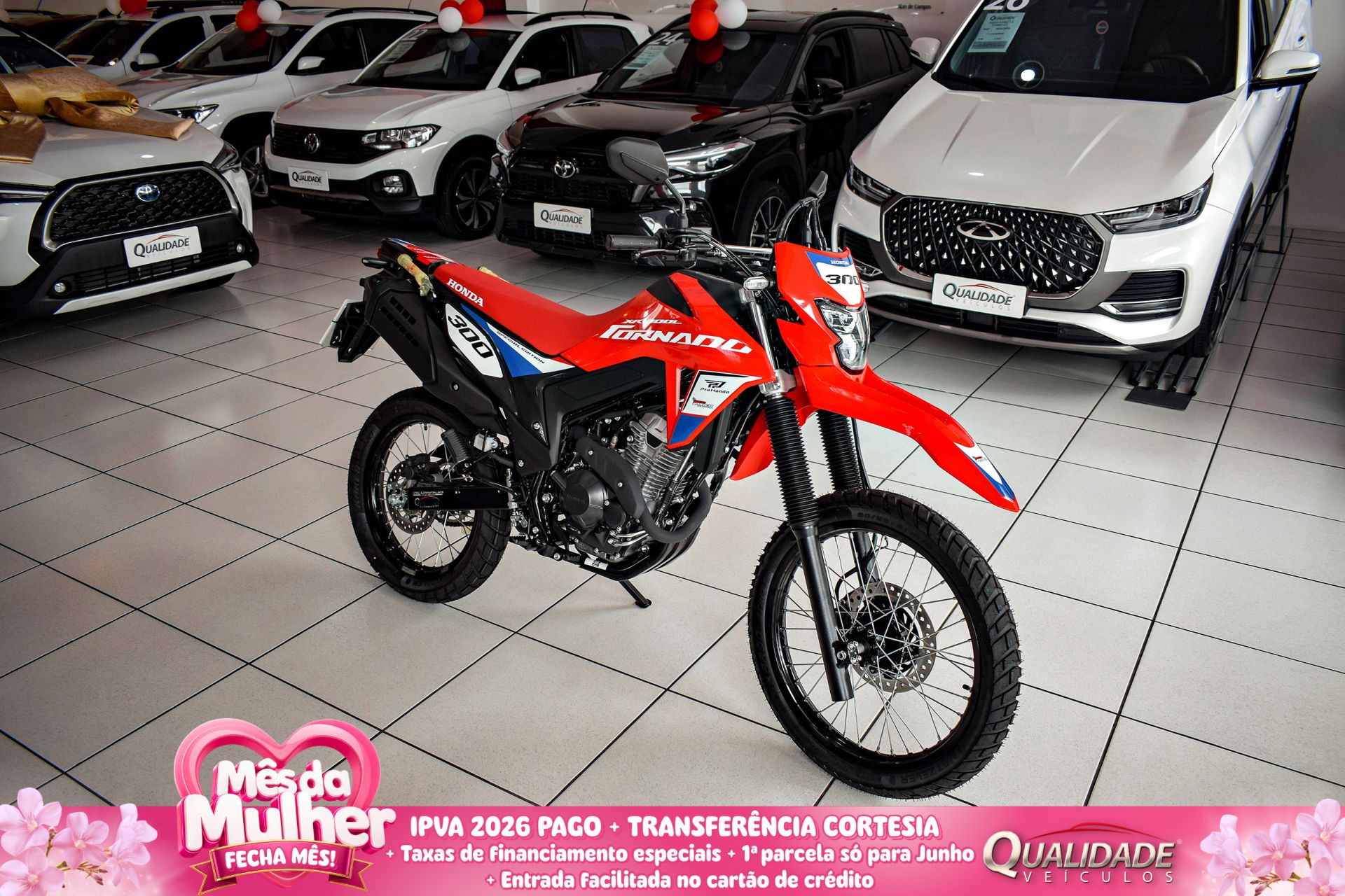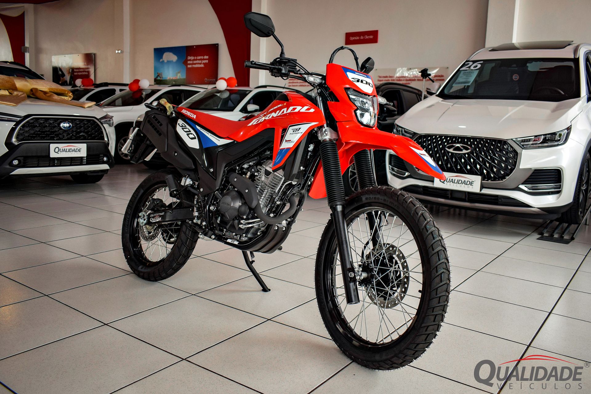 Observações:XR300L TORNADO SPECIAL EDITION 2026 na cor Vermelho - Fighting Red, 0KM, já emplacada, com IPVA 2026 pago e à pronta entrega.